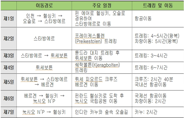 노르웨이 피요르드 트레킹과 핀란드 호수 속 자연을 직접 걸어보면 어떨까요.