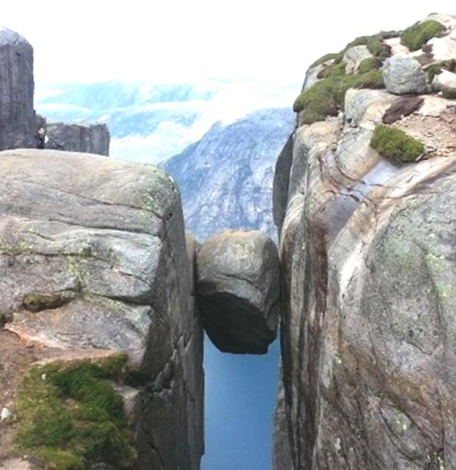 세 번째 피요르드 트레킹은 감추어진 바위로 불리는 쉐락볼튼입니다. 벌려진 바위 틈새에 낀 쉐락볼튼은 아슬아슬 간당간당하기만 합니다. 오가는 길이 가파른 암반 사면이고 쇠사슬을 잡고 올라야 하는 긴 산행이지만 뤼세 피요르드 암릉에 오르는 흥분되는 트레킹입니다.