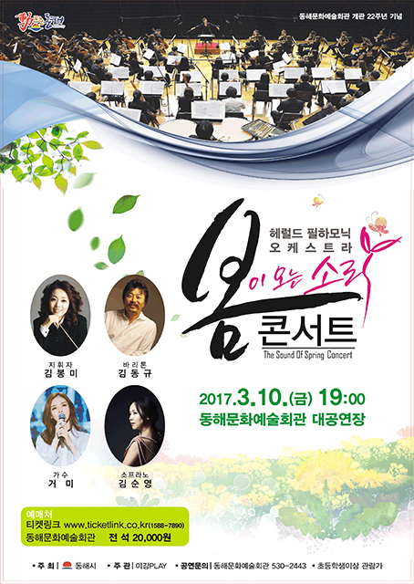 강원 동해시(시장 심규언)는 문화예술회관 개관 22주년을 맞아 국내 최정상급 성악가와 오케스트라를 초청해 시민들에게 ‘봄이 오는 소리 콘서트’를 개최한다고 밝혔다.
