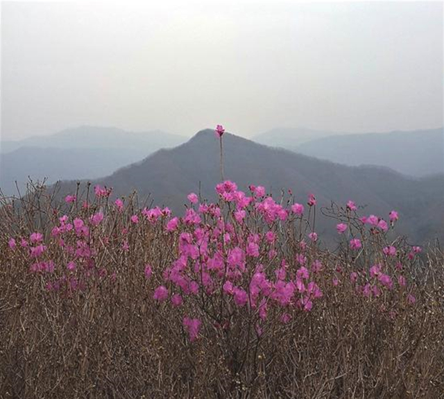 잡목이 우거진 대간길은 시리봉을 지나 계속되고 떡하니 솟은 남근석을 지납니다. 바로 올라서면 781봉입니다. 넓은 진달래밭이 펼쳐집니다. 선홍빛 진달래가 무리지어 피어있는 이곳에 서면 도원경이 따로 없습니다. 바로 이곳이 선경이고 함께 걷는 도반들이 신선입니다. 진달래 꽃잎 한 잎 따서 입에 넣어 봅니다. 향긋한 봄이 입 안 가득 전해옵니다.