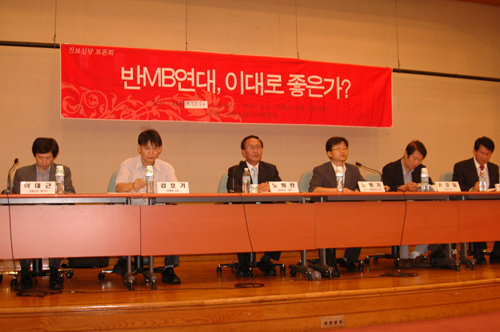 이같은 고민 속에서 진보신당은 12일 국회에서 '반MB연대, 이대로 좋은가'라는 토론회를 열었다.
