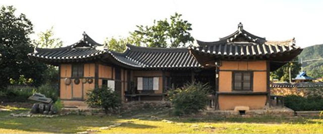 사괴당(四槐堂) 고택이 있는 상금곡리는 원주변씨와 함양박씨의 집성촌입니다. 사괴당 고택은 첨주공파의 입향조인 귀계 변희리의 증손 사괴당 변웅녕(邊應寧)이 터를 잡았는데 고택의 배치는 튼ㅁ자형으로 정침과 양익사가 ㄷ자형을 이루면서 앞쪽에 일자형 문간채가 자리하고, 우익사 동편에 이층 대문채가 있습니다.