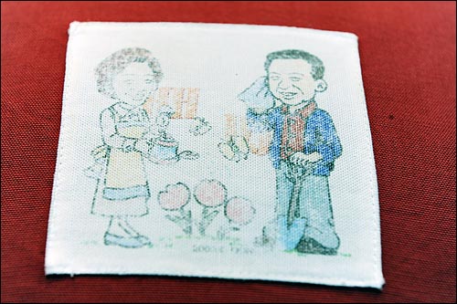 생전에 침실에서 등받이로 사용했던 방석도 낡았기는 마찬가지다. 함께 꽃밭을 가꾸는 다정한 모습이 새겨진 이 방석은 김 전 대통령 내외가 아낀 것이라고 한다.