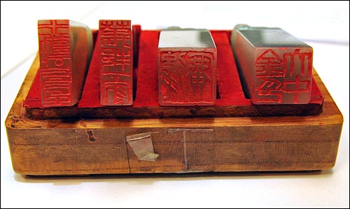 서예애호가였던 김 전 대통령이 사용하던 낙관도 공개됐다. 1992년 대통령 선거 세 번 째 낙선 이후 선물받은 이 낙관은 '후광', '김대중인', '만방일가'(세계는 하나의 가족), '행동하는 양심'이라는 글씨가 새겨져 있다.