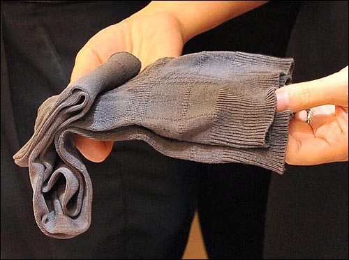 | ▲ 김 전 대통령이 입원 당시 신었던 양말ⓒ인터넷사진공동취재단 |