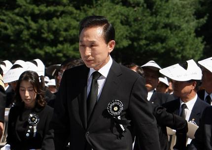 | ▲ 지난 23일 국회에서 열린 고(故) 김대중 전 대통령의 영결식에 참석한 이명박 대통령. ⓒ청와대 |