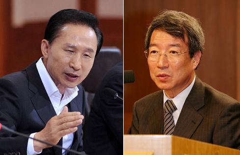 | ▲ 이명박 대통령과 정운찬 국무총리 후보자. ⓒ프레시안 |