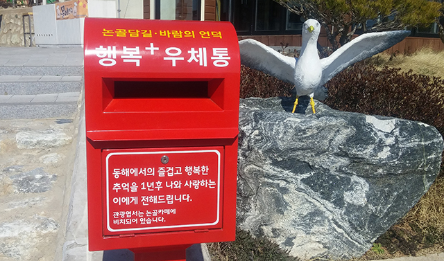 동해시 주요관광지에 설치된 행복우체통은 동해 관광을 통해 얻은 즐거움과 추억을 1년 후에 배달해 주어 관광객에게 즐거움과 추억을 되새기는 계기가 되어 꾸준한 인기를 끌고 있다.