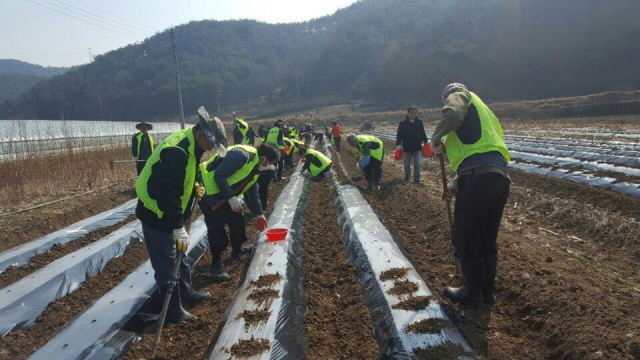 이날 행사는 마을주민이 무상 임대한 농지 1500㎡의 부지에 협의회 기금으로 구입한 감자종자 20㎏ 6박스를 파종하고, 비닐을 씌우는 공동 작업으로 이뤄졌다.