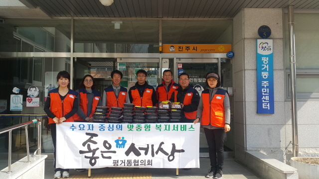 경남 진주시 좋은세상평거동협의회(회장 노병대)는 16일 평거동 소재 공돈이야기(대표 강유심)에서 기탁 받은 성품(돼지고기, 50kg)을 독거노인, 장애인, 조손가정 등 평거동 관내 저소득 가정 38세대를 방문해 전달하는 봉사 활동을 실시했다.