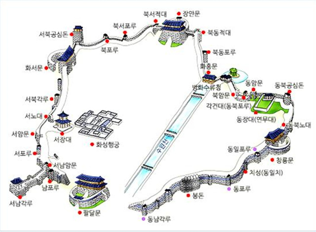 특히 네 번째 국왕 정조의 위민정신과 개혁정신이 화성에 담겨 있어 세계문화유산이 되었다는 것은 화성이 가지고 있는 가치가 진정 대단하다는 것을 알게 해주는 것입니다. 그렇다면 화성에 무엇이 있길래 국왕 정조의 위민정신이 담겨 있다고 유네스코 전문가들은 판단한 것일까요? 그것은 아무래도 직접 눈으로 보아야 알 수 있겠지요.
