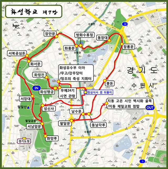 이렇듯 이번 화성답사는 바로 화성행궁과 화성 전체를 둘러 볼 것입니다. 그리고 화성 내에 중요한 에피소드가 담겨 있는 곳을 모두 찾아가 볼 것입니다. 아마도 이런 답사는 단 한 번도 없었을 것입니다. 이번 답사는 그래서 정조와 화성 그리고 당시의 사람들을 만나는 여행이 될 것입니다.