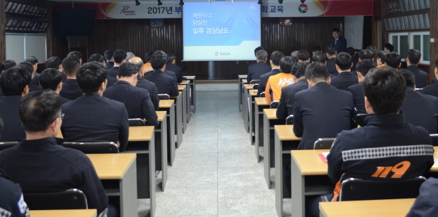 ▲진주소방서는 21일 직원 120명이 참석한 가운데 부패방지 및 청렴도 향상 순회교육을 실시했다. ⓒ진주소방서