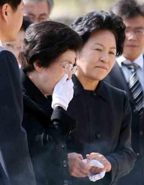 | ▲ 노 전 대통령의 묘소를 찾은 이희호 여사가 눈물을 흘리고 있다. ⓒ뉴시스 |
