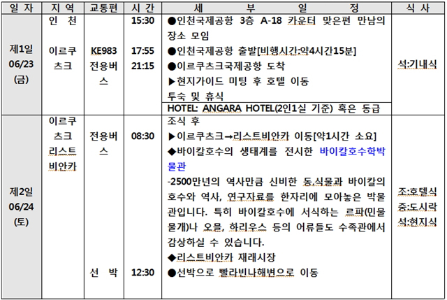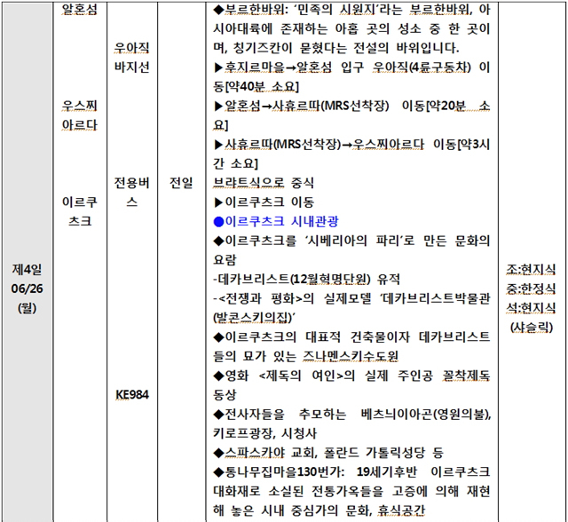 이번 <바이칼 환상특급>의 자세한 일정은 다음과 같습니다.