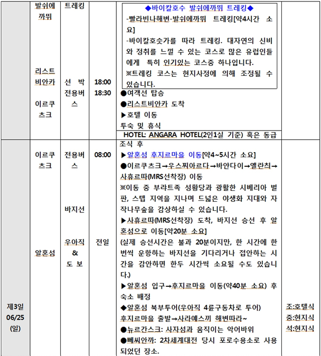 6월 23일 출발 <바이칼 들꽃트레킹>은 마감되었습니다. 감사합니다