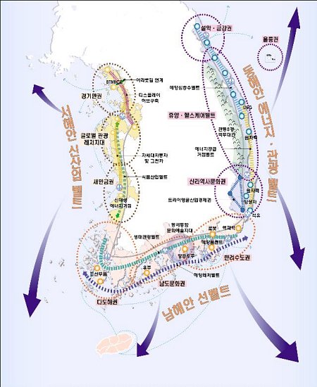 동·서·남해안과 남북접견지역 등 4개벨트를 기존의 광역개발 구상을 확장한 '초광역' 단위로 묶어 개발한 뒤 내륙과의 산업적 연계를 구축한다는 '2단계 개발계획'이 정부의 구상이다.