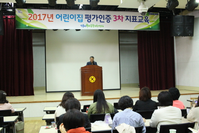 경남 진주시 육아종합지원센터는 지난 8일 오전 9시 은하수동산 다목적강당에서 어린이집 보육교직원 180명을 대상으로 '2017년 어린이집 평가인증'에 대한 지표교육을 실시했다.