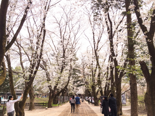하늘은 청명했다. 지난번에 보았던 청설모와 다람쥐는 봄이 온 게 신난 듯 이리저리 뛰어다녔다. 연한 잎사귀를 골라 뜯어먹던 토끼는 발걸음 소리에 놀라 동산 뒤로 숨었다. 중앙 잣나무 길에서 동쪽으로 걷다보면, 강변을 따라 일렬로 늘어선 거대한 수양벚나무 군락지가 눈에 들어온다.