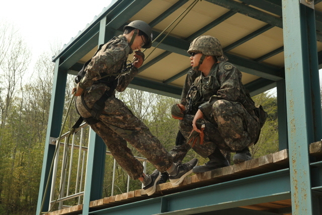 오후에 실시된 헬기레펠 훈련(고공에서 줄을 타고 하강하는 훈련)에는 전원이 실시한 기초훈련 후 지원자를 대상으로 현역군인들과 같은 높이에서 실시했는데, 여학생을 포함해 30여명의 학생이 지원해 요즘 청소년들이 나약하기만 한 것이 아니라는 것을 보여주려는 듯 서로서로 파이팅 구호를 외치며 격려하는 모습을 보였다.