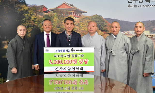 진주사암연합회(회장 불암스님 여래사주지)는 “겨우내 추위로 어려운 분들의 생활이 걱정된다. 마음을 다해 준비한 밑반찬과 김치가 우리 지역의 소외되고 어려운 이웃들의 마음을 봄처럼 따뜻하게 보듬었으면 한다”고 기부의 취지를 전했다. 또한 진주사암연합회는 부처님 오신 날을 기념해 지난 2015년부터 매년 500만원 씩 진주시 좋은세상을 통해 저소득 주민에 대한 사랑을 실천해 오고 있다.