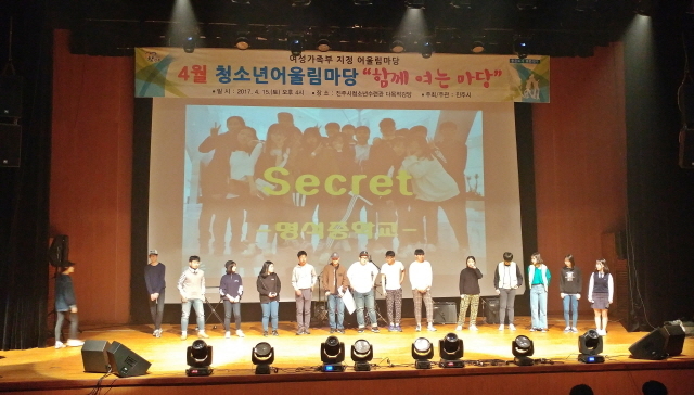 청소년 문화공연에서는 댄스, 밴드, 난타 등 6개 동아리의 열띤 무대공연이 펼쳐졌으며 공연 중간중간 마련된 동아리 홍보무대에서는 명석중학교 진로 동아리 ‘시크릿’을 비롯한 3개 동아리 소속 청소년들이 직접 무대 위에 올라 자신들의 동아리를 소개하는 시간을 가졌다.