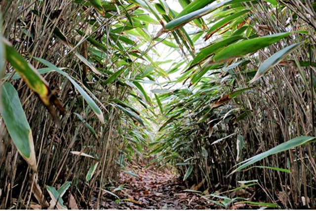 백운산을 내려서면 조릿대가 반겨줍니다. 어른 신장을 훨씬 넘는 조릿대 길이 계속 이어집니다. 한때는 조릿대의 사스락 거리는 소리가 연인의 속삭임처럼 들릴 때도 있었습니다. 걷는 이의 기분이나 상태에 따라서 바람결에 조릿대 물결치는 소리와 걸으며 스치는 소리가 다르게 들립니다. 오늘은 어떤 속삭임으로 다가올지 자세히 귀 기울이며 조릿대 사이로 발길을 들입니다. 싸리나무 군락지를 지나고 조릿대 길은 계속 됩니다.