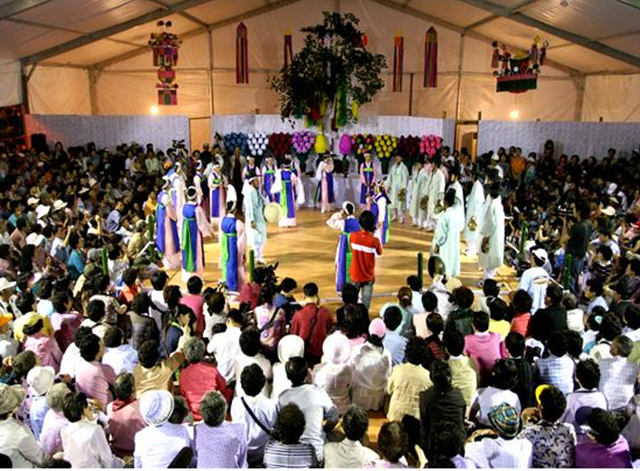 강릉단오제의 모든 일정은 음력으로 진행됩니다. 음력 5월 5일 단오를 가운데 놓고 앞뒤로 8일 동안 축제가 벌어진답니다. 그 중 가장 의미있는 행사는 5월 3일(양 5월 28일. 일요일)에 시작합니다. 바로 지난 4월 보름 대관령국사성황사에서 모시고 내려온 신목과 대관령국사성황의 신위, 그리고 대관령국사여성황의 신위를 남대천 가설굿당으로 모셔가는 날이기 때문입니다.
