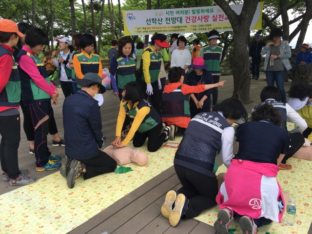 경남 진주시 상대동 여성자율민방위기동대(대장 김정희)는 11일 오전 10시 선학산 전망대에서 대원·등산객·주민 등 100여명에게 심폐소생술 교육 및 체험 교육을 실시했다.