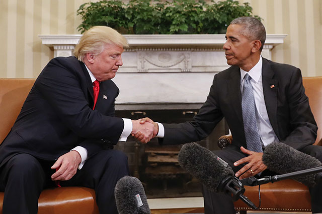 ▲트럼프 대통령 당선 후, 백악관에서 만난 버락 오바마(오른쪽) 미국 대통령과 도널드 트럼프 당선자 ⓒAP=연합뉴스