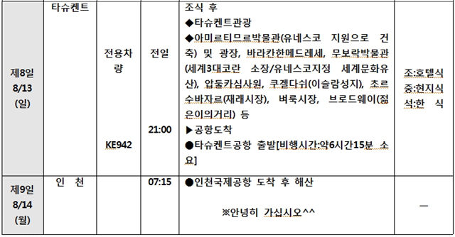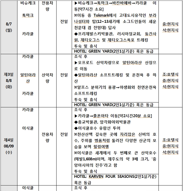 중앙아캠프가 오는 8월 6일(일)부터 14일(월)까지 진행할 <중앙아시아 천산의 비경과 실크로드 유적의 감동> 9일간의 답사 개념도와 자세한 일정은 다음과 같습니다.