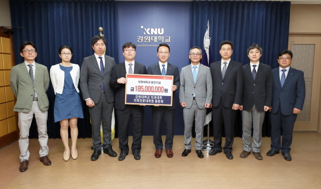 강원대 의학전문대학원 동문회(회장 류동렬 의전원 교수)가 학교 발전기금으로 1억8천500만 원을 약정했다.