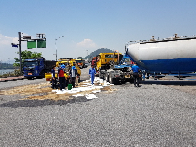 광양 태인교 앞 유조차 충돌사고 기름유출