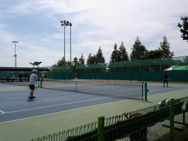 ▲지난 20일 경남도지사배 시니어 테니스대회가 개최된 가운데 선수들이 기량을 발휘하고 있다. ⓒ진주시
