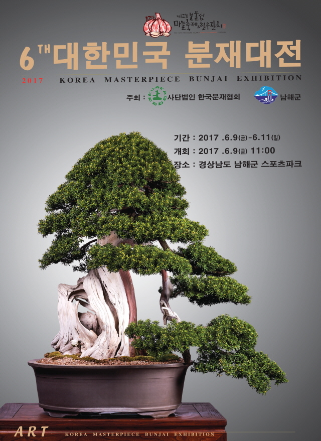 (사)한국분재협회(회장 유창효, 주식회사천보철강 대표이사)는 오는 6월 9~11일까지 경남 남해군 서면 스포츠파크에서 개최되는 ‘제6회 대한민국 분재대전’ 전시 행사에 국내 최고의 작품들을 선정해 전시한다고 22일 밝혔다.
