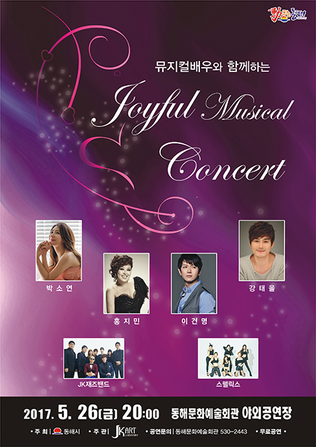 강원 동해시(시장 심규언)는 가정의 달을 맞아 온 가족이 즐거운 시간을 가질 수 있는 무료 뮤지컬 공연 ‘조이풀 뮤지컬 콘서트’를 개최한다고 밝혔다.