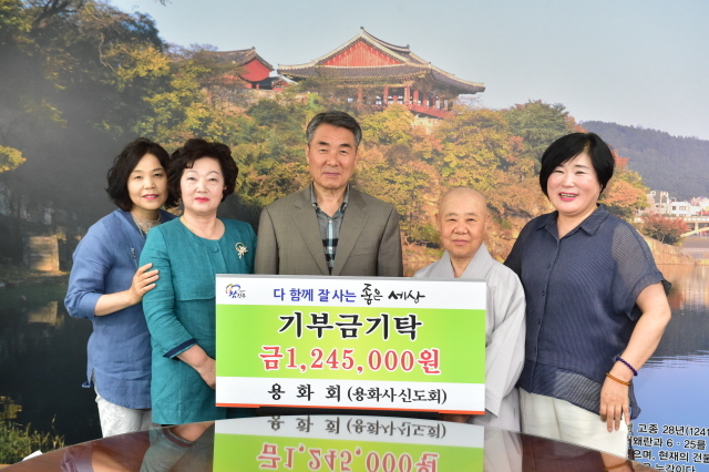 용화회(회장 박순이)는 “부처님의 자비를 작게나마 전하고 실천할 수 있는 계기가 되기를 소망하며 신도들이 마음을 모아서 좋은세상을 찾아왔다. 우리지역의 어려운 이웃을 위해 작으나마 보탬이 되기를 바란다”고 기부의 취지를 전했다.