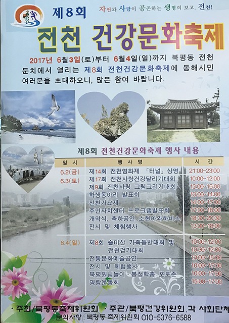 강원 동해시 북평동행정복지센터(동장 이지예)는 오는 6월 2~4일 전천둔치 일원에서 ‘제8회 전천 건강문화 축제’를 개최한다.