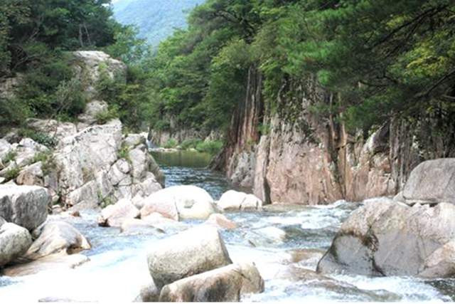 제9곡은 파천(巴串)으로 개울 복판에 흰 바위가 펼쳐 있으니 티 없는 옥반과 같아서 산수경관을 찾아 이곳에 오는 관광객은 누구나 이 넓은 반석 위에 거치지 않는 사람이 없습니다.