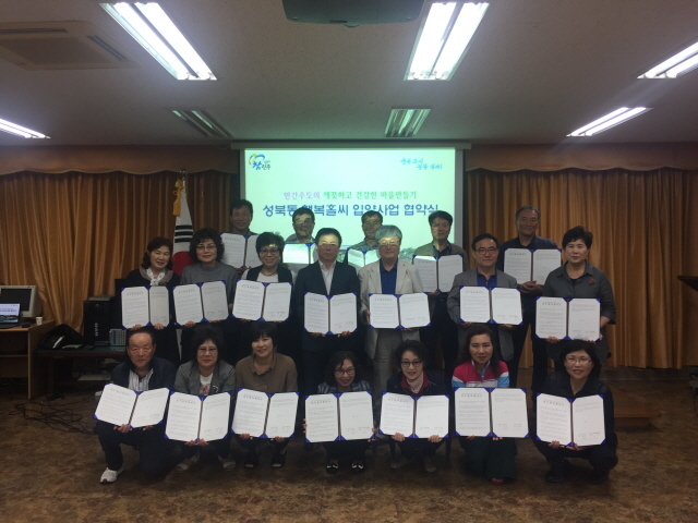 ‘행복홀씨 입양사업’은 지역명소 등 일정구간을 주민 및 단체가 입양해 자율적으로 청소 등 환경정화를 통해 민들레 홀씨처럼 행복이 퍼져가는 활동으로 성북동 통장협의회 외 17개 단체가 참여한다.