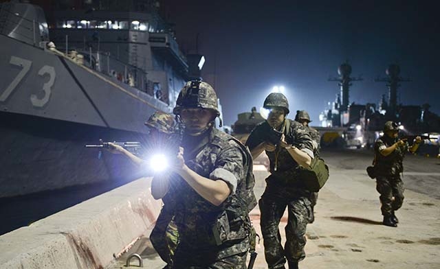 특히 지난 20일 야간에 진행된 통합항만방호훈련에는 해군 1함대 장병 및 동원예비군과 육군57연대, 동해경찰서, 동해지방해양수산청, 어업정보통신국 등 관·군·경 합동 전력이 참가해 동해 항만에 침투하는 적 특수전 세력에 대응해 완벽한 통합 항만방호태세를 확립했다.