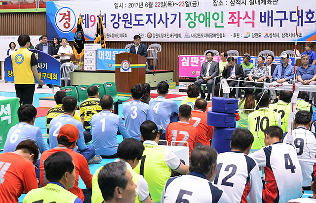 강원 삼척시는 ‘제9회 강원도지사기 장애인좌식배구대회’가 22일 삼척체육관에서 개막됐다.