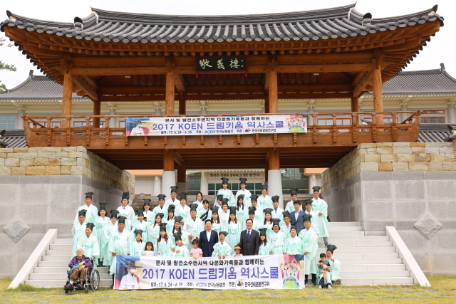 KOEN 드림키움 역사스쿨은 진주·사천지역 다문화가족 87명을 대상으로 남명학을 비롯한 실천유학 연구, 계승을 위한 서당식 예절교육, 역사·교육탐방 및 인성 프로그램 체험 교육을 통해 우리나라 역사의 이해를 높이고, 참된 가치관을 정립함과 동시에 다문화가정 부모에게 우리나라 역사와 전통에 대한 올바른 인식 형성으로 부모와 자녀 간 상호이해를 증진하고자 시행했다.