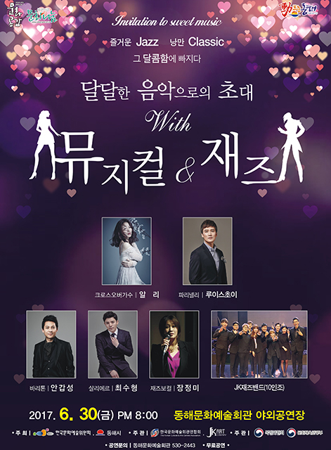 강원 동해시(시장 심규언)는 문예회관과 함께하는 방방곡곡 문화공감 사업의 일환으로 민간예술단체의 우수 공연 ‘달달한 음악으로의 초대 With Mussical & Jazz’기획 공연을 개최한다.