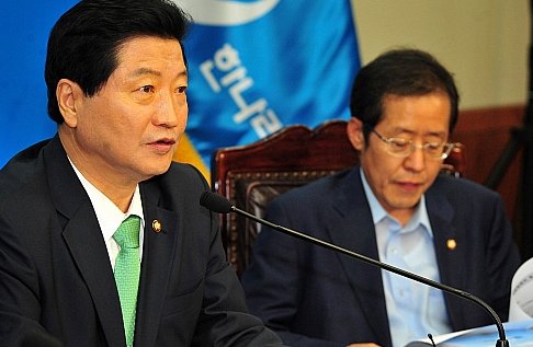 | ▲ 안상수 대표 (사진 왼쪽) 체제가 출범한지 5일이 지났지만 한나라당 지도부의 불협화음은 계속되고 있다. ⓒ뉴시스 |