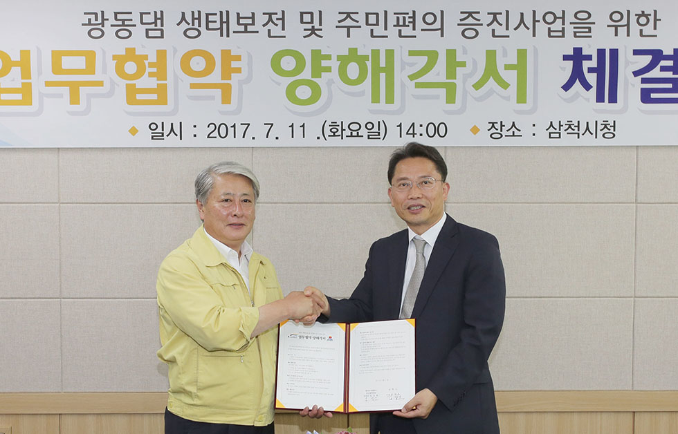 삼척시, K-water와 광동댐 생태보전·주민편의 증진사업 업무협약