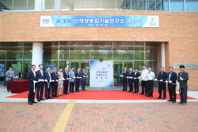 ▲한국남동발전과 경상대학교가 지난 13일 KOEN 신재생융합기술연구소 개소식을 하고 있다. ⓒ한국남동발전