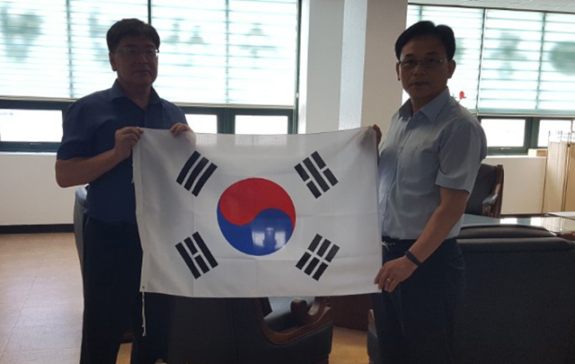주민자치위원장은 지난 17일 묵호동장과 함께 동해시수협을 방문해 태극기 200매를 전달했다.