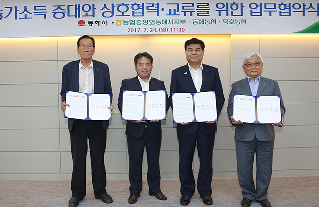 강원 동해시(시장 심규언)가 지역별 자원과 특성을 반영한 농가소득 증대를 위한 협력 사업을 전개하기 위해 관내 3개 농협과 손을 맞잡았다.