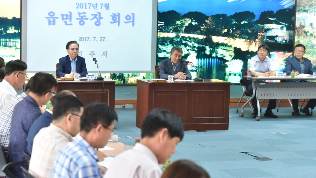 이번 회의에서는 승진, 전보 등으로 새로운 보직을 받은 읍‧면‧동장들에게 당면사항을 전달하고 각 실국소별 현안과 시책을 안내했다.